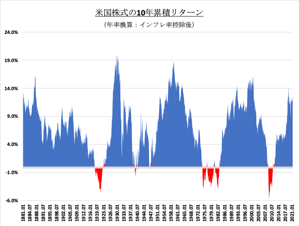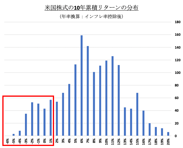 2.米国株式は10年投資しても約15%のケースで運用成果は低迷する!